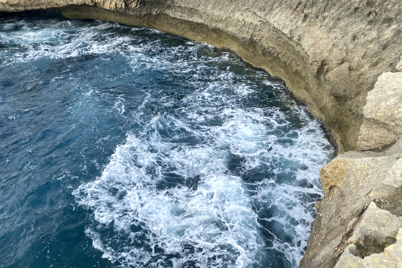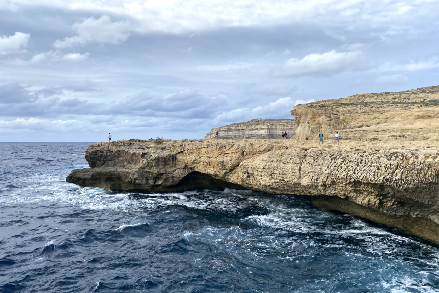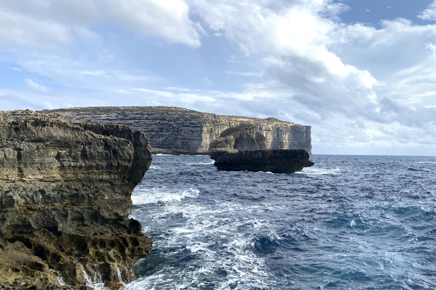 Il mare qui è meno verticale rispetto a Xlendi o Dwejra, ma estremamente vario: piscine naturali, saline, rientranze, archi bassi e rumore di onde che si frangono con continuità.