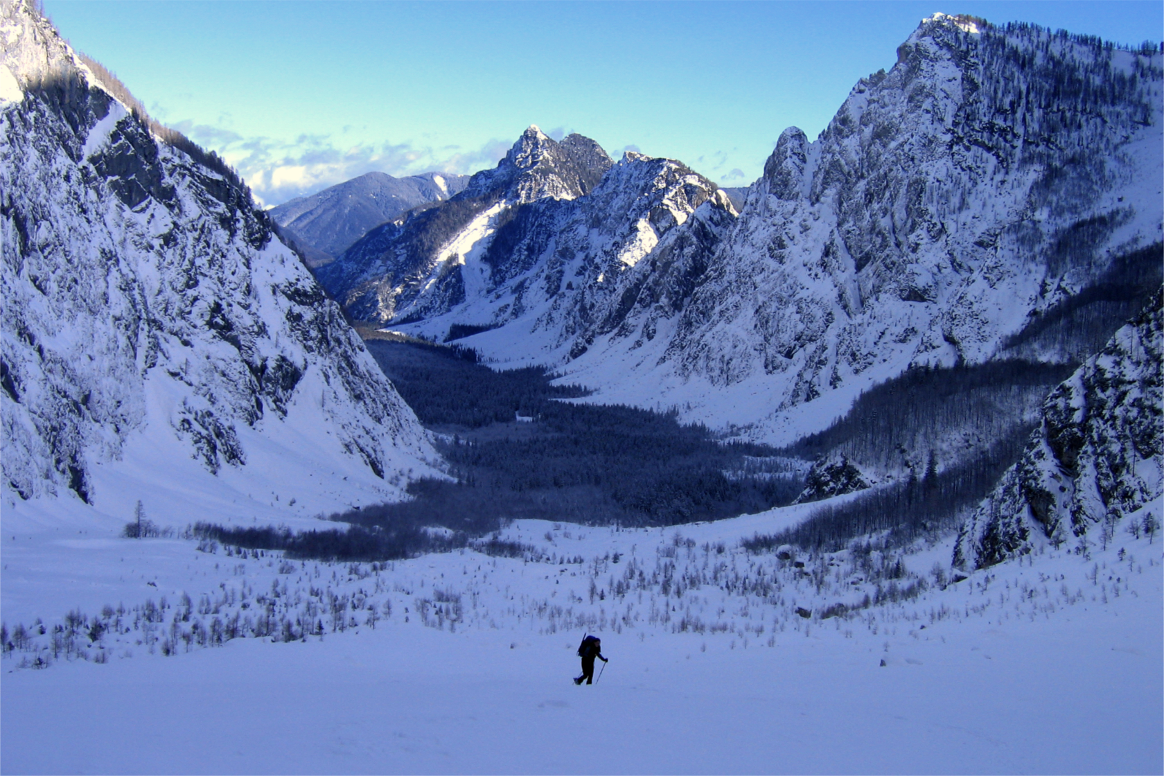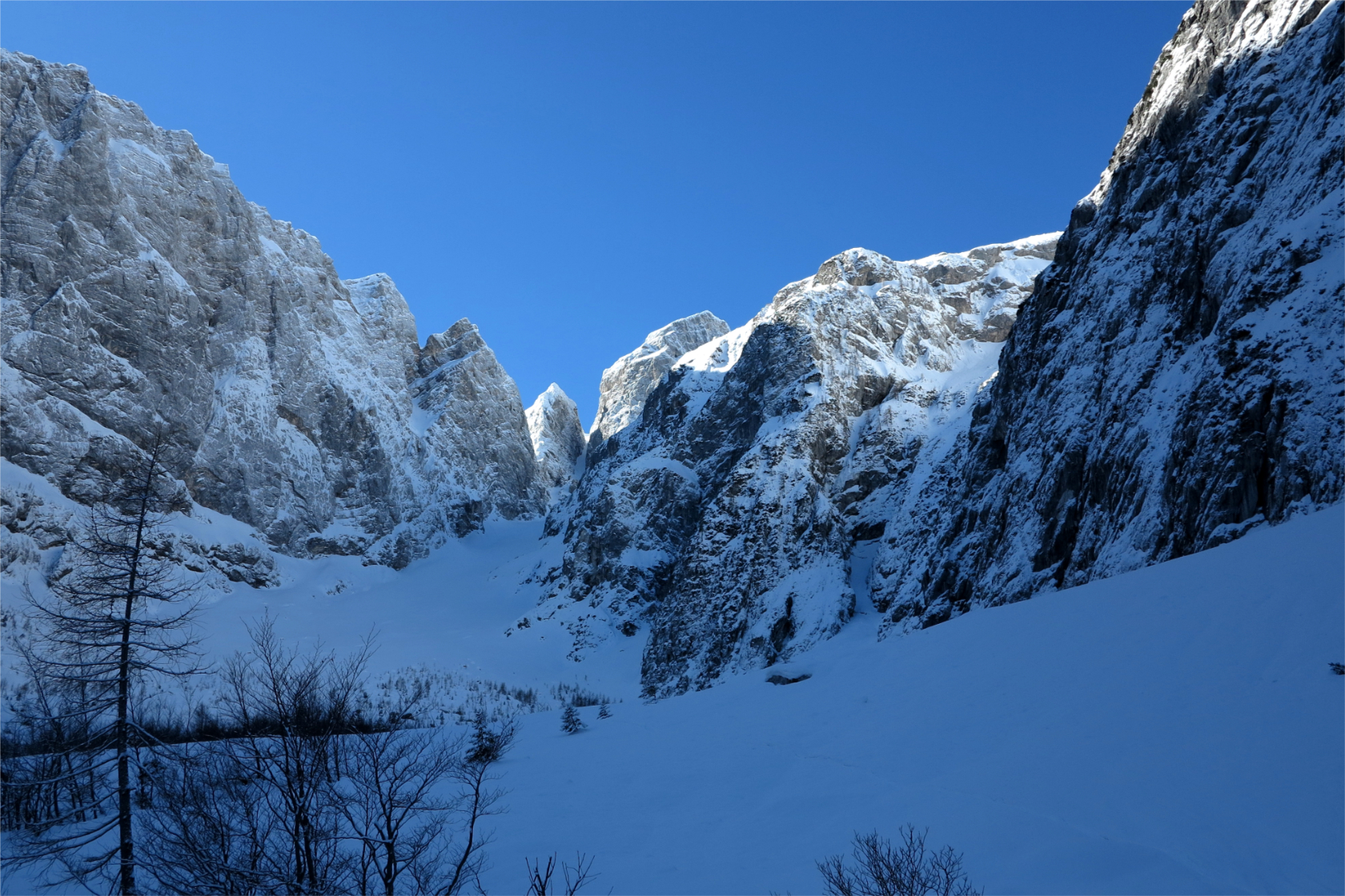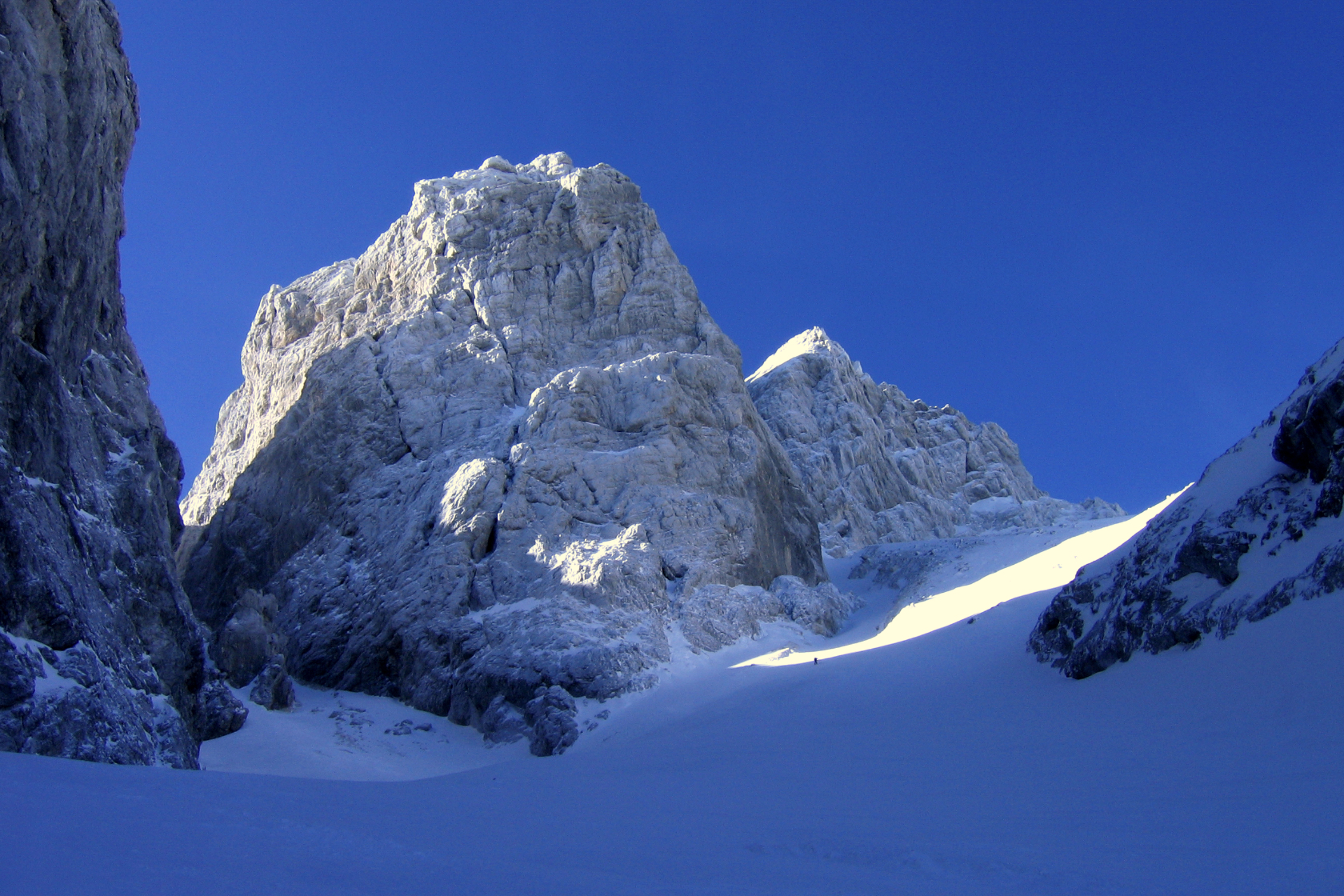 Per itinerario logico raggiungeremo la base del Canale Kugy, evidente couloir visibile anche da fondo valle. Non sarà questa la meta per oggi: piegheremo a destra superando un tratto più ripido per guadagnare il plateau terminale.