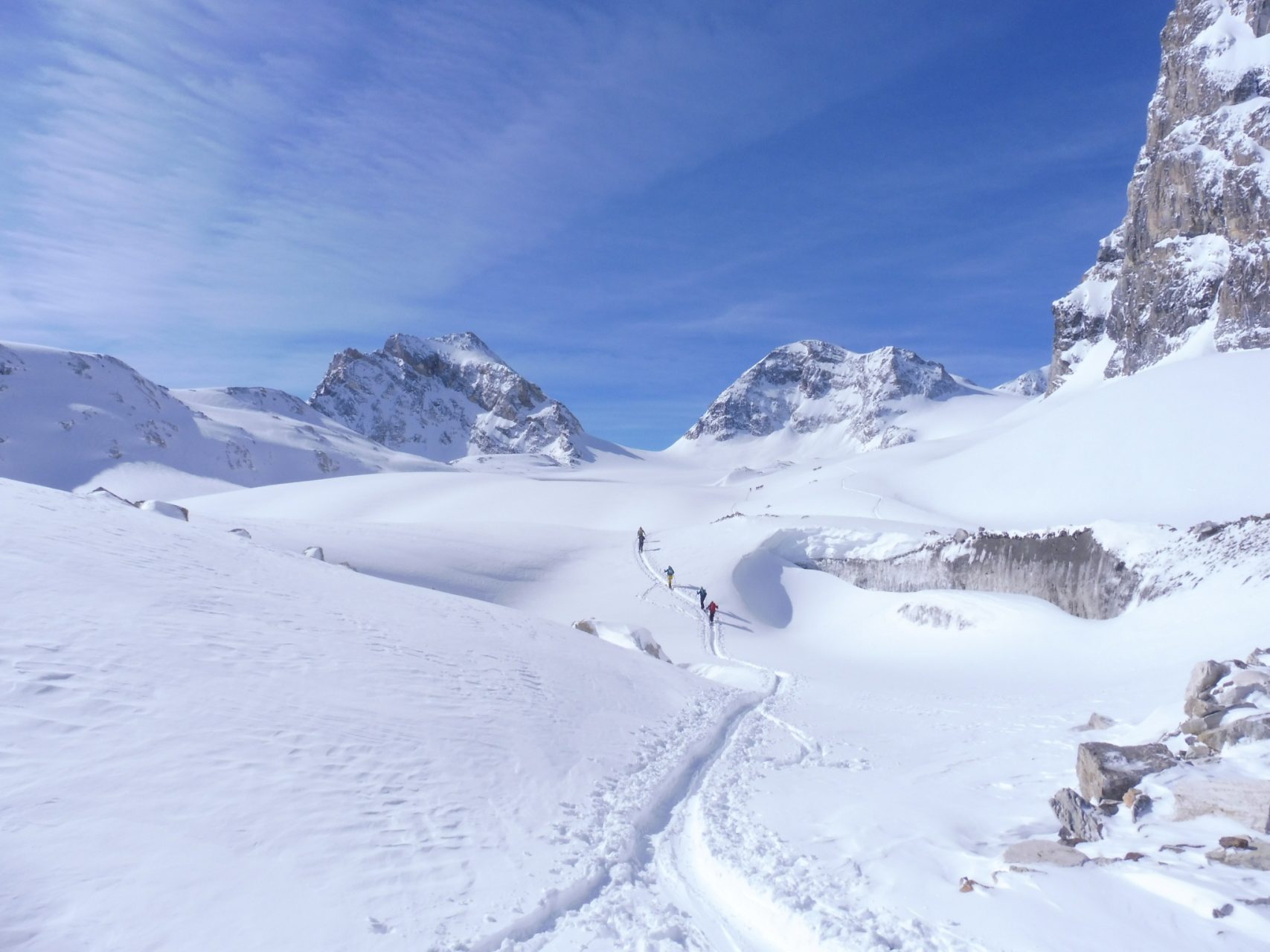 Sei in grado di salire con le pelli lungo percorsi tracciati con pendenze non superiori ai 35° anche con inversioni.