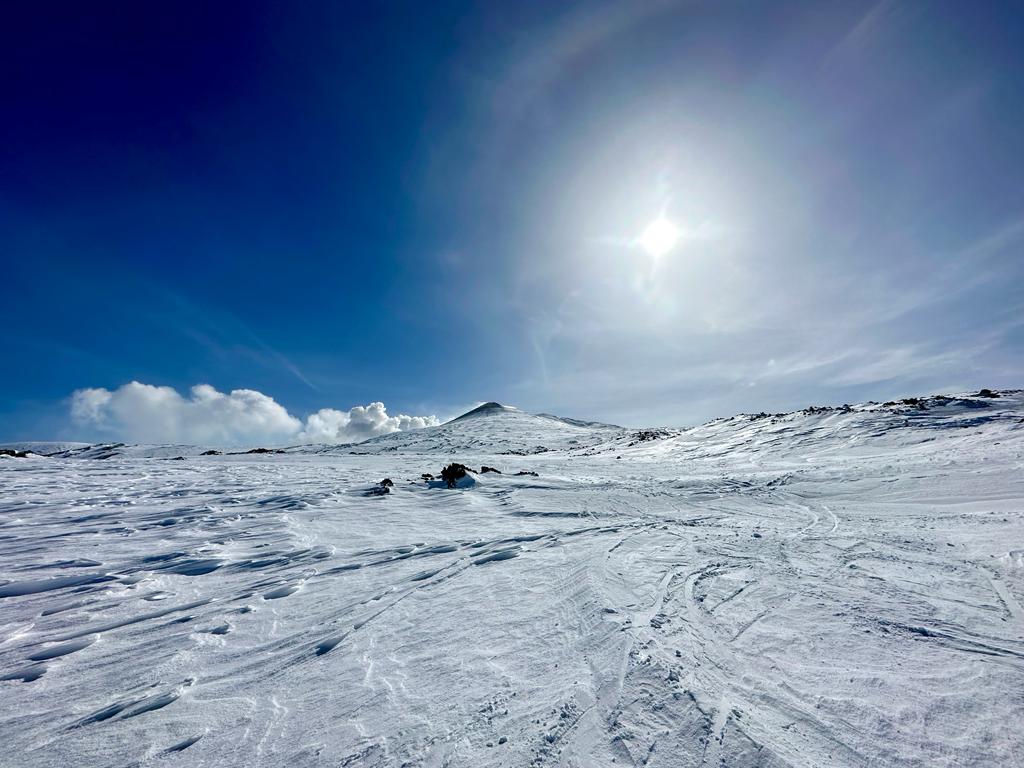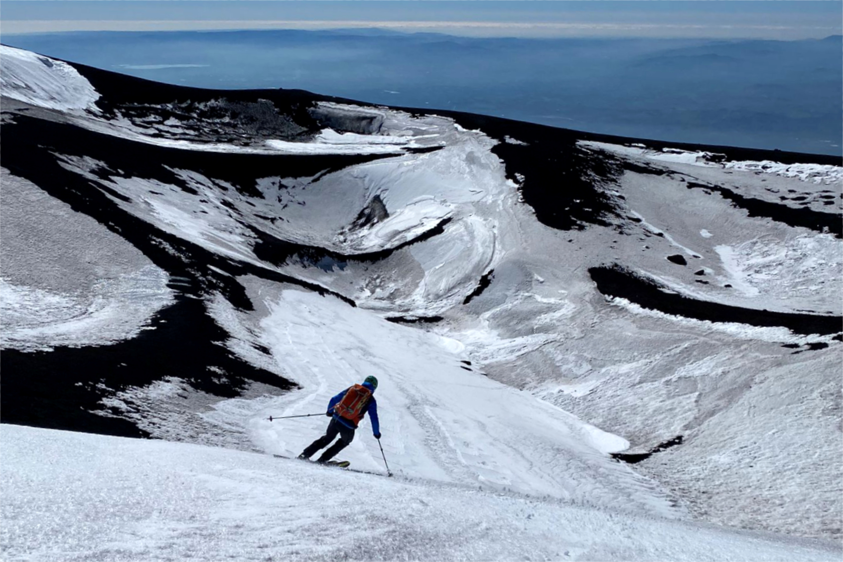 Una delle linee più classiche prevede di salire dalla stazione della funivia a 2500 m in sole 3 ore con le pelli di foca fino a raggiungere la cima del vulcano. Da qui la vista sui quattro crateri è impressionante e maestosa e spazia fino al mare.