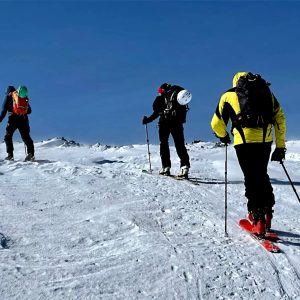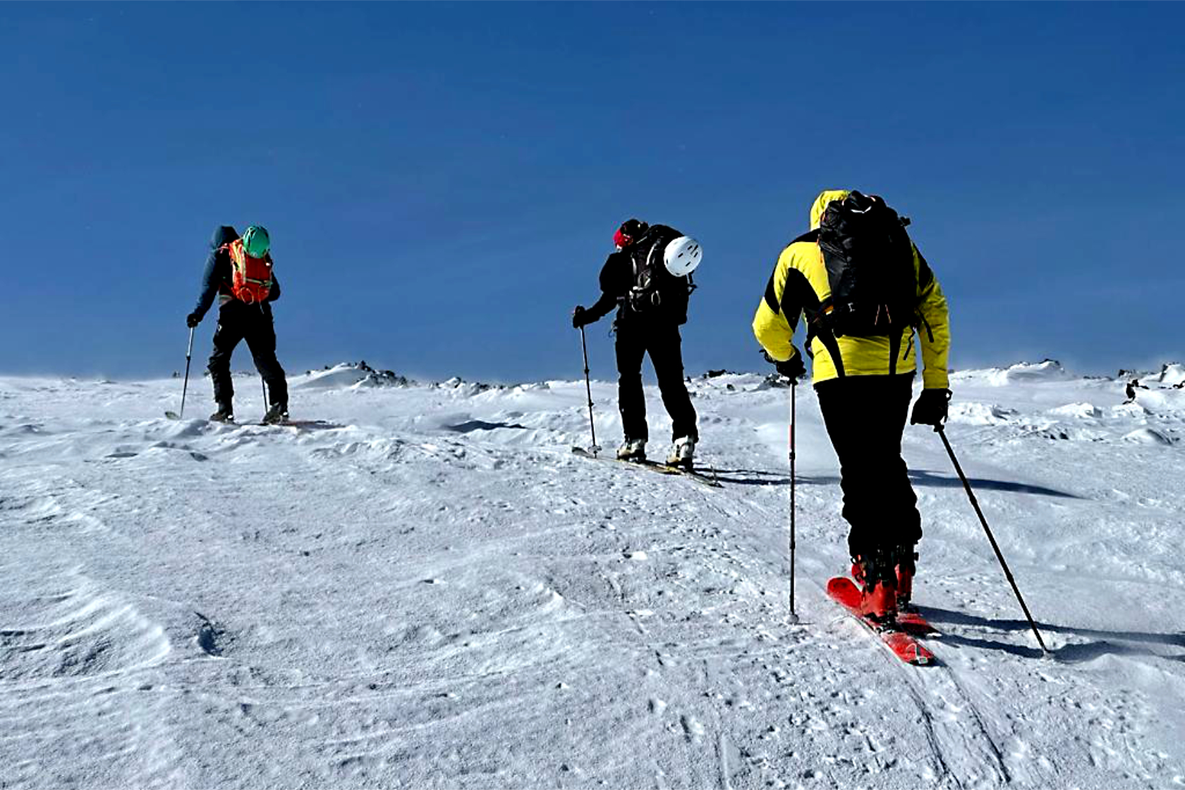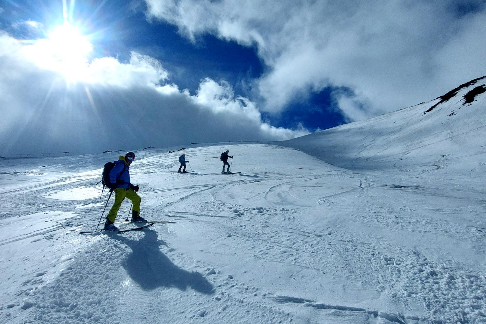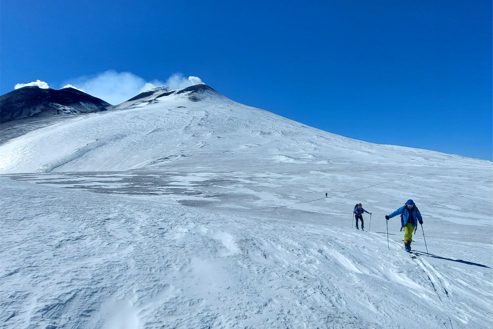 L’Etna, con i suoi 3343 m di quota, è un grandissimo cono che rivolge lo sguardo al mare. Il clima a questa latitudine ma soprattutto a questa quota favorisce la veloce stabilizzazione delle frequenti nevicate compattando il manto e rendendolo perfetto per lo scialpinismo. Anche le pendenze, su tutti i versanti e canaloni che lo solcano, presentano inclinazioni ideali adatte a tutti gli sciatori.