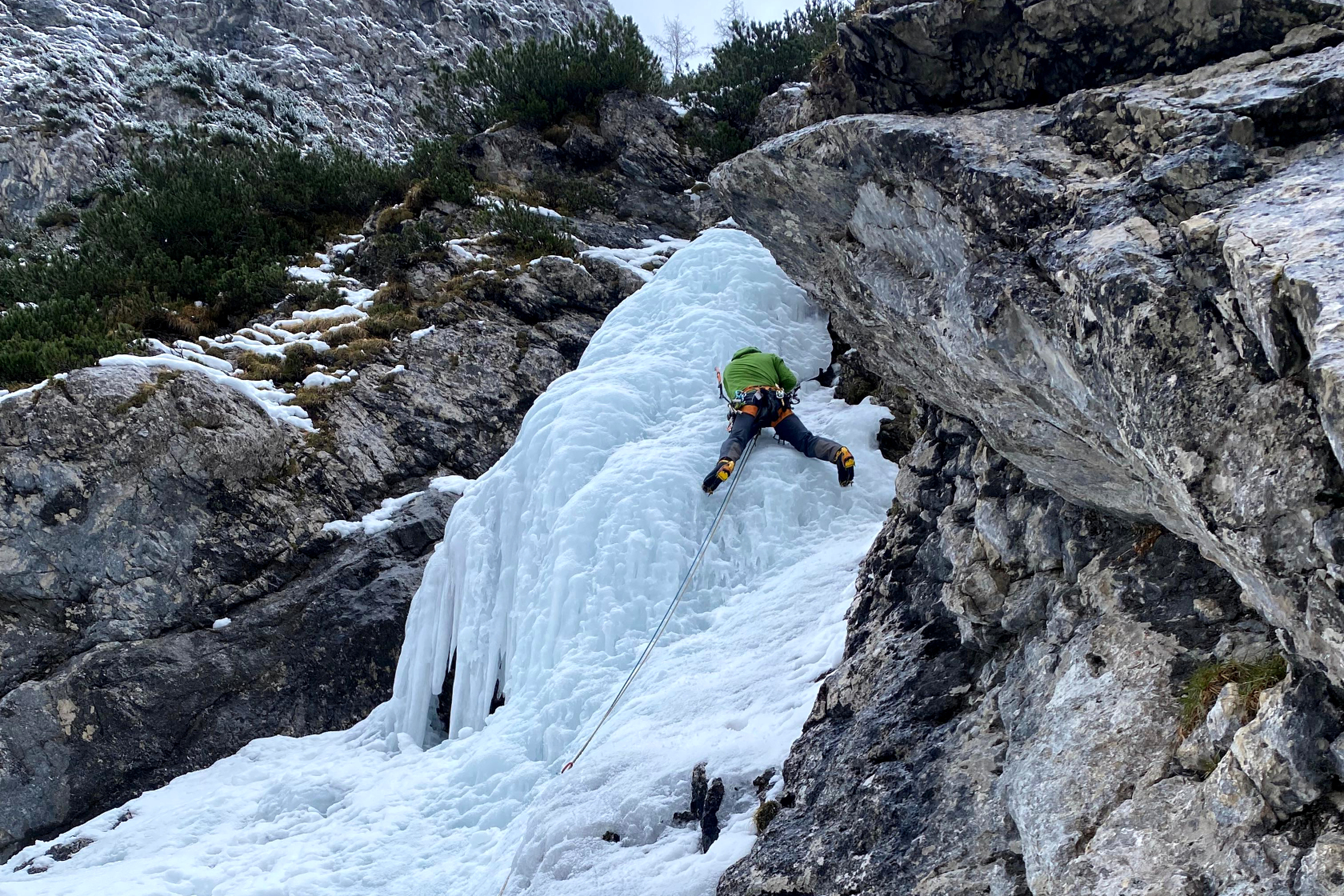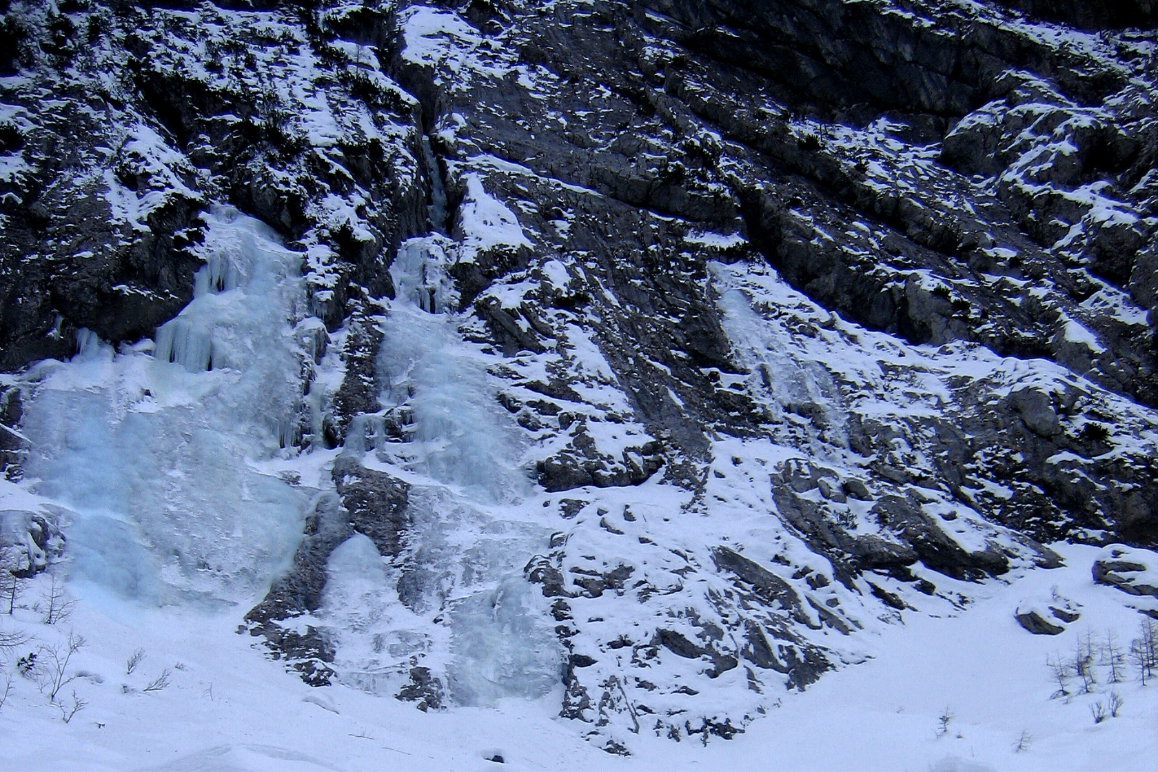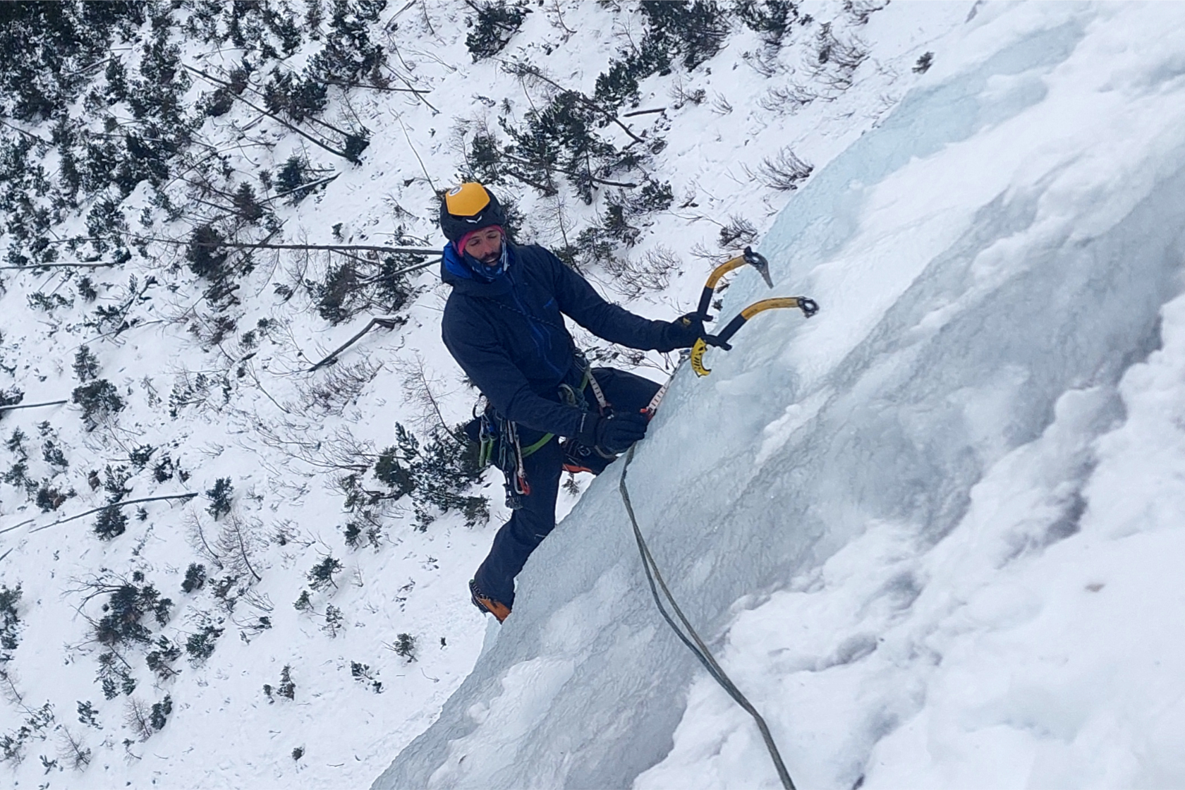 La nostra scelta ricade sulla bellissima Stella e Lucciole, una cascata che si incunea in una goulotte a metà parete che sa regalare bellissimi tiri per una lunghezza di 220 metri.
